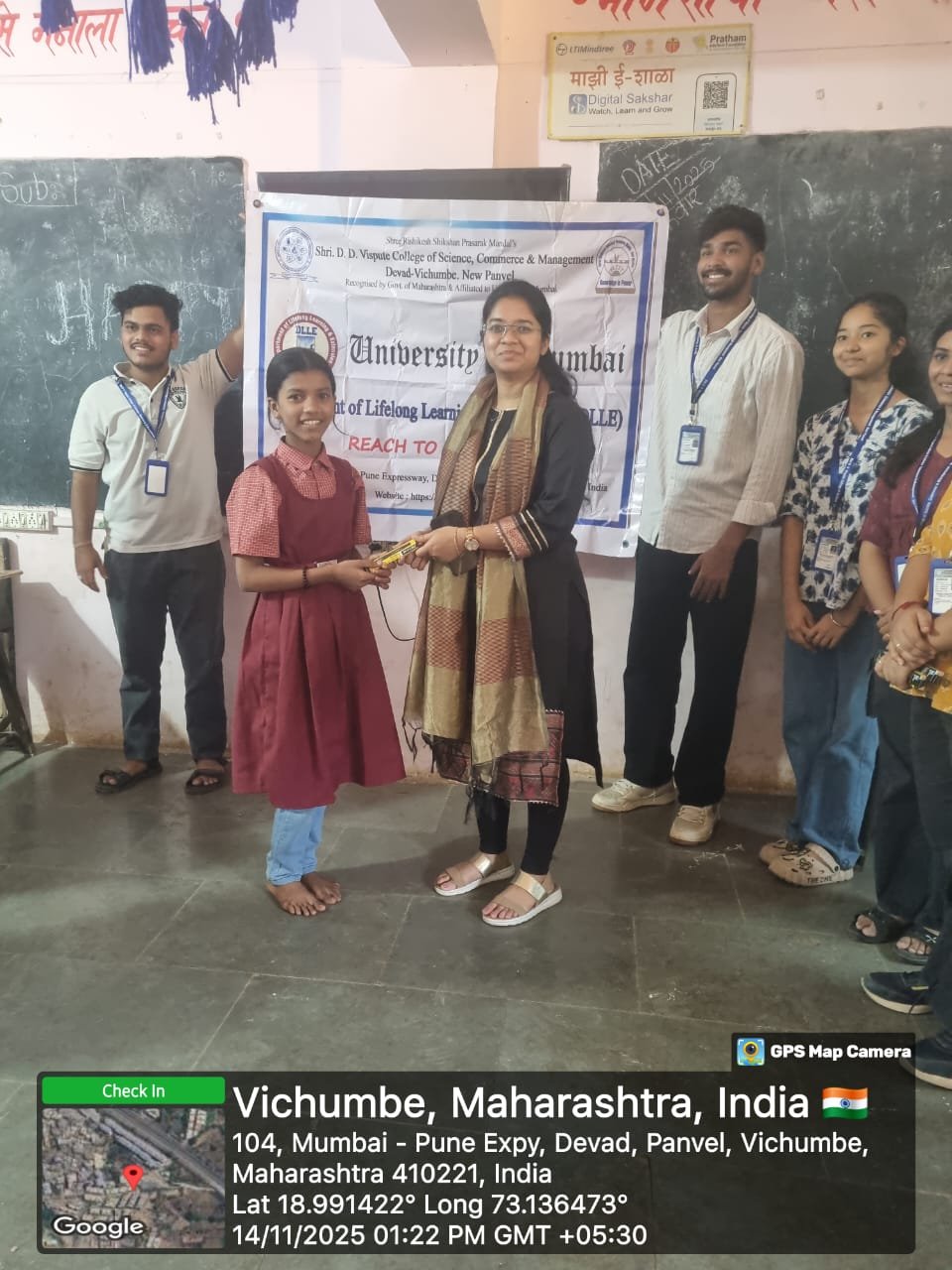 On the occasion of Children’s Day, 14th November 2025, students under the DLLE Unit of Shri. D. D. Vispute College of Science, Commerce and Management visited Vichumbe Grampanchayat ZP School and celebrated the day with great enthusiasm.